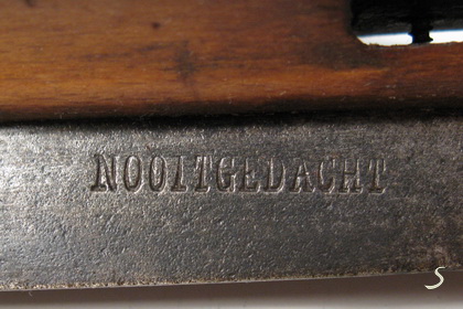 Het verhaal gaat dat een proces werd aangespannen dat door Nooitgedagt werd gewonnen. Het Duitse bedrijf zou na het vernietigen van zijn voorraden failliet zijn gegaan. Wat er van dit verhaal waar is, is onduidelijk. Onbekend is namelijk om welk bedrijf het ging. Maar de afbeelding hieronder laat zien dat er wel degelijk schaatsen in omloop zijn geweest met het vermaledijde merk in de ijzers. Detail 2 toont het fraaie kopteken van deze schaatsen.